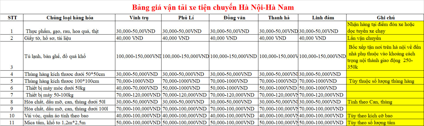 • Nhận hàng bốc xếp tại kho linh đàm về hà nam lúc 8h-15h30 xe bắt đầu từ cầu dậu linh đàm về hà nam